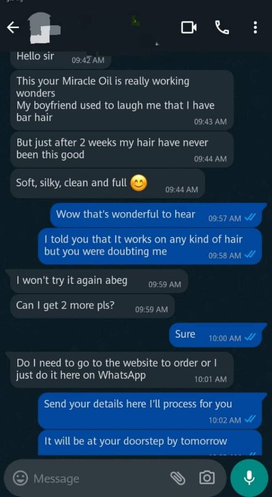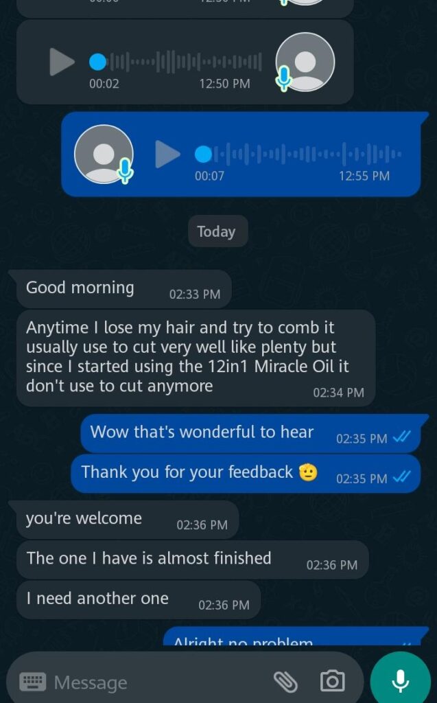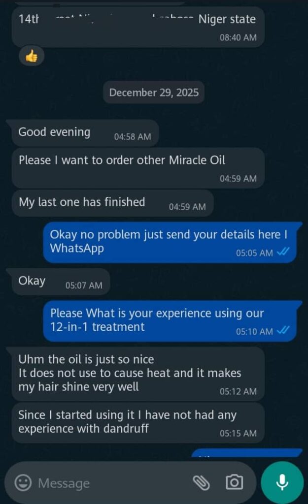 The 12-in-1 Miracle Oil gives you the results of a ₦50,000 hair spa treatment for a fraction of the cost. It’s an investment in your beauty and your peace of mind.