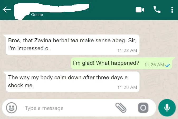Finally, a solution made for Nigerians like you who prefer nature’s way. Zavina Herbal Tea is a powerful herbal detox drink that helps flush out those stubborn infections from deep inside. No harsh chemicals, no hospital visits, no judgment. Just pure relief in a simple tea.